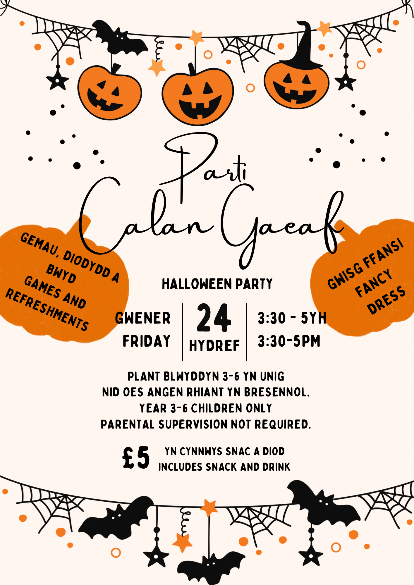 - 3:30yp - Ysgol yn cau ar gyfer gwyliau hanner tymor